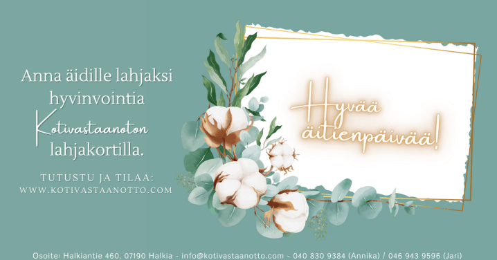 Muista äitiä hyvinvointilahjakortilla hierontaan, yhdistelmähoitoon tai fysioterapiaan! Samalla tuet lähipalveluita.