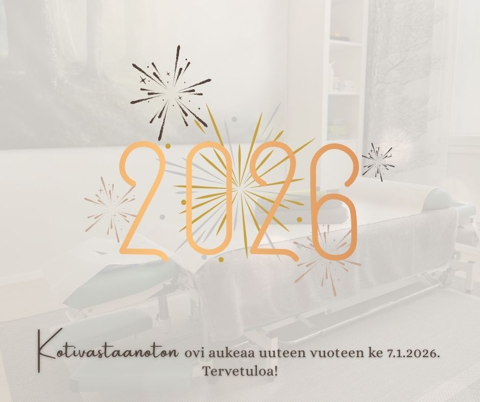 Kotivastaanoton toiminta jatkuu jälleen ke 7.1.2026! Jos seuraava aikasi on varaamatta, katso vapaat aikamme nettiajanvarauksestamme. Muistathan varata joululahjakortilla maksettavan aikasi ajoissa!